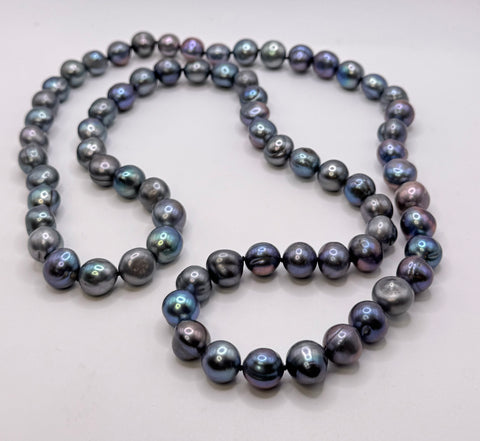 • 34 inch Blue Silver freshwater Pearl necklace (9-11mm)